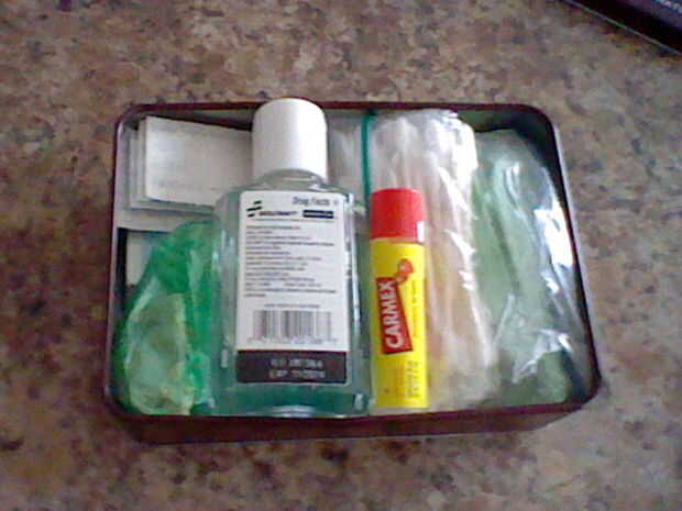 Este es un kit de primeros auxilios muy bonito que hice;algunos elementos adicionales que podrían añadirse son: una toallita de alivio de la picadura, cierta cantidad de cinta adhesiva, un alfiler para reventar ampollas, un pequeño trozo de piel de t