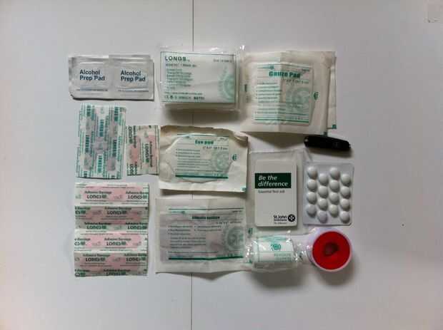 Este es un kit de primeros auxilios muy bonito que hice;algunos elementos adicionales que podrían añadirse son: una toallita de alivio de la picadura, cierta cantidad de cinta adhesiva, un alfiler para reventar ampollas, un pequeño trozo de piel de t