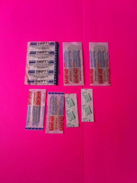 Sección B incluye: banda ancha ayuda (x2) venda pequeña ayuda (x2) mariposa pequeño vendaje (x2) rodilla Extra grande Band Aid (x1)