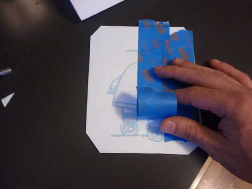 1. después de cortar su patrón de vinilo en rollo, cubierta de cinta adhesiva. Esto evitará que las secciones flotantes de vinilo en el lugar durante la transferencia.