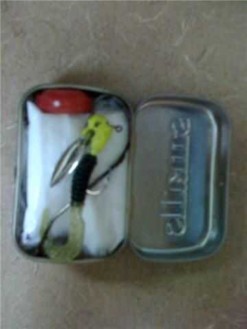 un mini kit de supervivencia que puede salvarle la vida ;)Contenido-1 lata de Altoids-1 pelo elástico y 1 banda caucho-1 bolsa de plástico-1 espejo de señales-Iniciador de fuego 1-1 compás-1 kit de pesca (anzuelos 4 2 platinas y un snap swivel)-Hilo