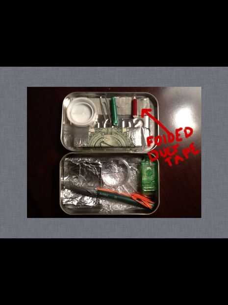 Un kit de supervivencia de bolsillo es simple. Es fácil de llevar porque es el mismo peso que un teléfono 6. El video arriba (https://www.youtube.com/watch?v=Cal7YRJriRgis) un gran video en el que muestra cómo construir el kit de supervivencia de bol