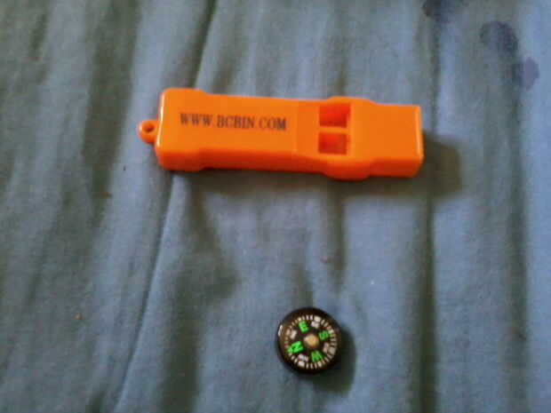 Luego añadí un silbato y brújula para la navegación y señalización, además de la tapa de la lata es reflectante como un espejo de la señal.