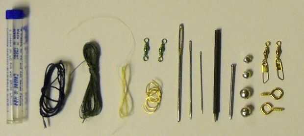 Cuadro 2 muestra el frasco de plástico, cuerdas y las cosas que caben dentro del frasco. Para organizar el cordaje y usar el frasco como un carrete, yo primero arrancaron la cinta gorila longitudinalmente en cinco tiras de diferentes anchos. Entonces, envuelto el frasco y su tapa con estas tiras, dejando un espacio entre cada par de tiras. Con un total de cinco tiras, que dejó cuatro lagunas y el cable de Kevlar, hilo de Kevlar, sedal y alambre de latón que cada uno consiguió envuelto en uno de los huecos, haciendo una unidad compacta que encaja perfectamente en la lata. La cinta sigue siendo útil al desenrollado, y al final de cada tira de la cinta es un lugar conveniente para meter el extremo expuesto de cada cuerda, por lo que no desentrañar fácilmente pero puede ser conseguido simplemente levantando el extremo de la cinta. La bobina acabada se muestra en el cuadro 4.