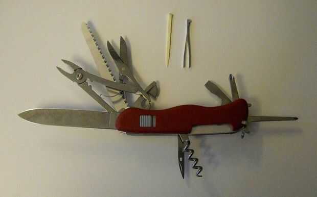 Si sé que voy a estar en el exterior, o viajar por zonas menos habitadas, comercio para arriba a mi cuchillo estándar "al aire libre", el® de Victorinox Swiss Army "Hércules" cuchillo (cuadro 9). Tiene una hoja principal más grande, bloqueo, grandes pinzas y tijeras, y una muy agradable de 3,5 pulgadas hoja, además de la mayoría de las otras hojas en el Deluxe Tinker. Le falta una cuchilla pequeña para trabajo fino, agrega un destornillador Phillips pequeño, y tiene un sacacorchos esencialmente inútil en lugar del gancho. Aún así, es muy prácticos y todavía solo 4,5 pulgadas de largo totales y pesa sólo 6,3 onzas.