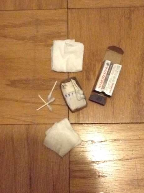 Ponga los curitas la gasa, tejidos y Q-tips en la caja.