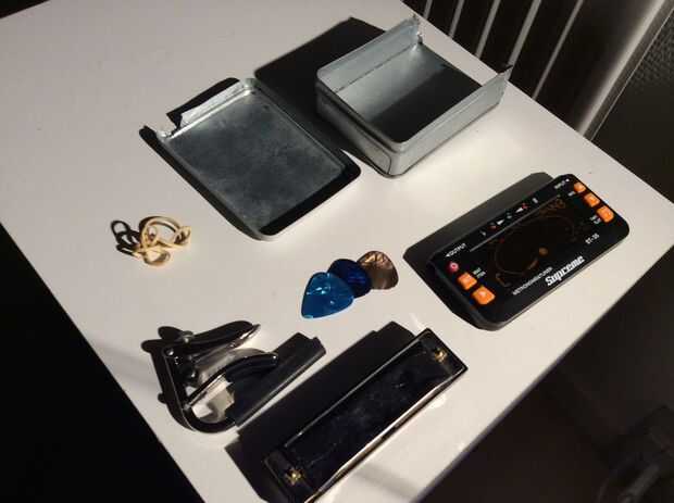 este es mi udgrave de mi primer kit de supervivencia.El único cambio es un sintonizador diferente y un peg más. Tomo este afinador porque, en mi kit de guitarra eléctrica, éste no podía no encajaba.Él también bolsillo tamaño!Para hacer esto que usted
