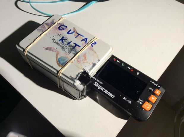 este es mi udgrave de mi primer kit de supervivencia.El único cambio es un sintonizador diferente y un peg más. Tomo este afinador porque, en mi kit de guitarra eléctrica, éste no podía no encajaba.Él también bolsillo tamaño!Para hacer esto que usted