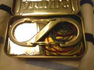 este es un kit de supervivencia de una lata Altoids. Me decidí a encontrar los mejores componentes de los instructables otros y algunos de mi propia y combinarlos en mi.Contiene:-5 huelga dondequiera fósforos (no mostrados)-un cuchillo suizo del ejér