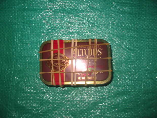 mis componentes lata Altoids supervivencia:1.Condom-puede ser utilizado para almacenamiento de agua o su finalidad.2 plata moneda-utilizado para wtshtf moneda/trueque.3.gauze-utilizado para lesiones de menor importancia como cortes o raspaduras para