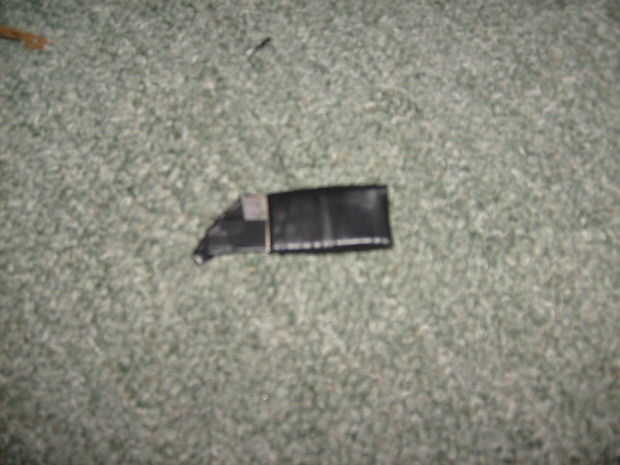 3) un pequeño trozo de fino cartulina alrededor un extremo de la cuchilla de corte de caja de la cinta. Luego con cinta adhesiva la hoja fino.