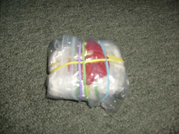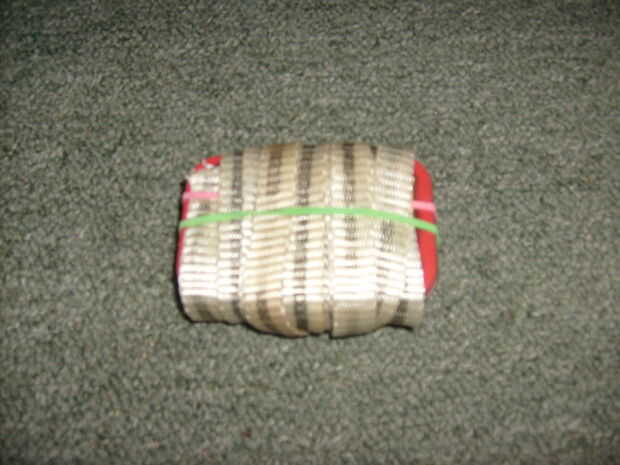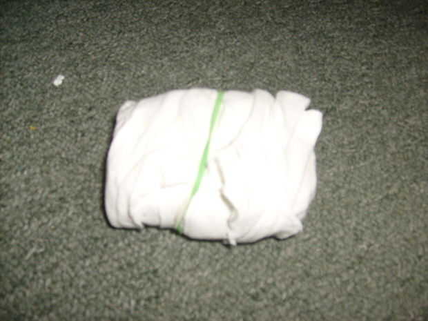 9) Coloque el paño sobre la lata y Envuelva bien. Entonces goma banda el paño para sujetarla.