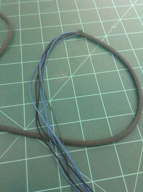 El núcleo interior de la pulsera se compone de lineas de pesca dentro de la carcasa de paracord. Para hacerlo primero deberás quitar las cuerdas de la mitad del molle. Esta parte será fácil, porque sólo se tire hacia fuera. Quizás desee mantenerlos, podrían utilizarse en el futuro. Ahora la parte difícil es conseguir el sedal en. Mi paracord tenía siete cuerdas en los medios, usé siete piezas de la línea de pesca. Intenté unos métodos diferentes, pero encontró su más fácil comenzar con los pedazos cortados a la longitud de la paracord que usas. A continuación, obtener toda la línea de pesca se alinearon agrupados juntos y derretir un poco el final. Apriete un poco solo el final para hacerlos permanecer juntos. Ahora la línea de pesca solo debe deslizarse justo en el paracord, pero ir agradable y fácil sólo para asegurarse.