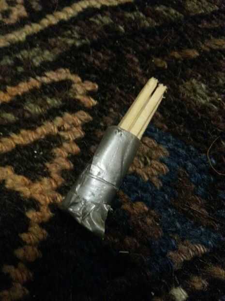 Los partidos juntos como en la foto, asegurándose de cubrir las cabezas de la cinta de conducto. No deben podemos moverse, ya que cualquier fricción súbita puede causar las cabezas de partido (si son huelga dondequiera) para encender.