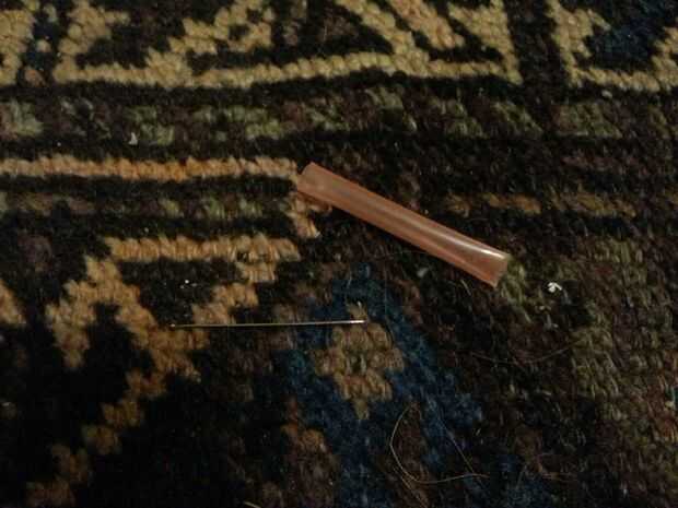 Este es un paso corto, pero preparación para más tarde, cuando estamos empaquetando estos elementos en el cuadro. Inserte la aguja en la paja. Asegúrese de que ambos pueden caber en el recipiente que usas. Si tienes que cortar la paja más corta, doblar sobre sí mismo, o conseguir una aguja más pequeña, hacerlo.