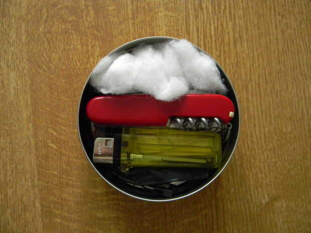 También podría añadir fósforos impermeables o reemplazar el encendedor con un iniciador de fuego magnesio. múltiples métodos de iniciar incendios siempre son de beneficio.