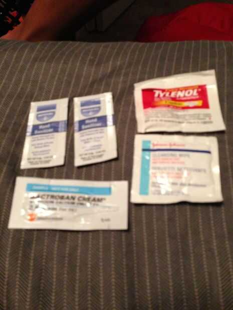 De medicamentos en productos de limpieza, se puede utilizar como quiera. Pero para este tutorial, utilizamos Tylenol para nuestra medicina, usamos desinfectante de la mano 24 horas limpio y hay crema antibacterial para ayudar con cortes y lavado