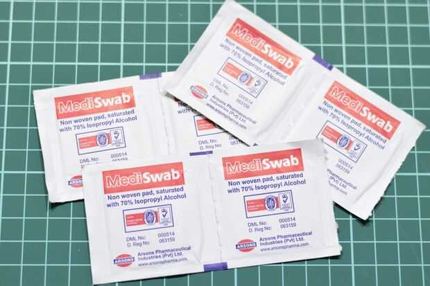 Hisopos de alcohol están también bueno tener. Lo mejor para desinfectar heridas. Y si usted necesita limpiar algo, serán también muy útiles. No necesita muchos de ellos. Dos de ellos deben hacer y cualquier marca está bien. Básicamente son lo mismo.