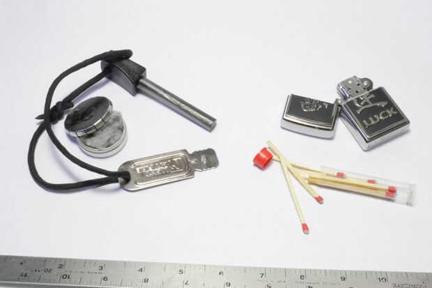 Si usted es un aspirante a delito de incendiar (Hi, primo Jamie!), humo, tiene 100 pies de paracord de nylon los extremos de los cuales deben ser fundidos cuando se corta, o como no morir de hipotermia, a veces todo el mundo necesita fuego. Generalmente, esto significa encendedores o fósforos. Encendedores son reutilizables, pero menos compacto. Los partidos son compactos, pero sólo funcionan una vez. Personalmente, prefiero los partidos, puesto que (no siendo un fumador) no necesita fuego demasiado a menudo cuando yo estoy no acampar. Si te sientes particularmente montaña-viril, puede utilizar a una bujía como el ilustrado (coincidentemente hecho por las mismas personas como la knifoon). Si quieres ir a esa ruta, llevar algunas pelusas secadora alrededor con usted como Yesca.
