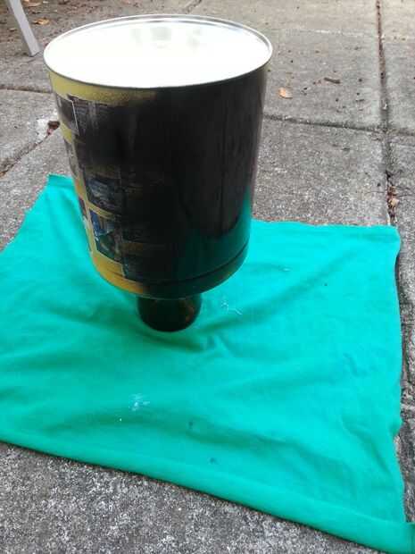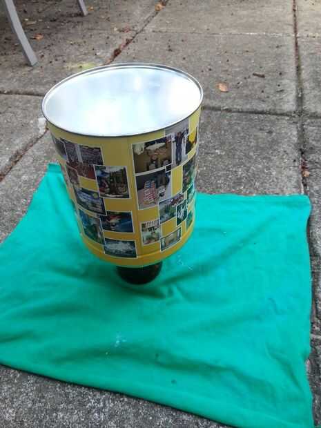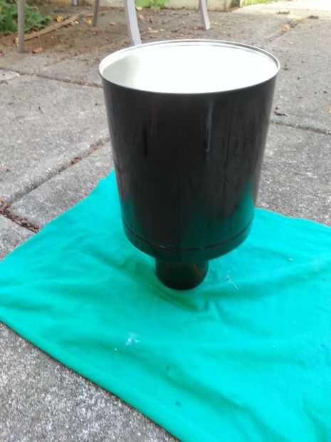 Quería cubrir el viejo exterior de la can ya que yo personalmente no podía soportar el fondo amarillo. Mientras que otro color hubiera sido más interesante, tenía una lata de pintura en aerosol negra plano colocación alrededor y decidió por conveniencia.