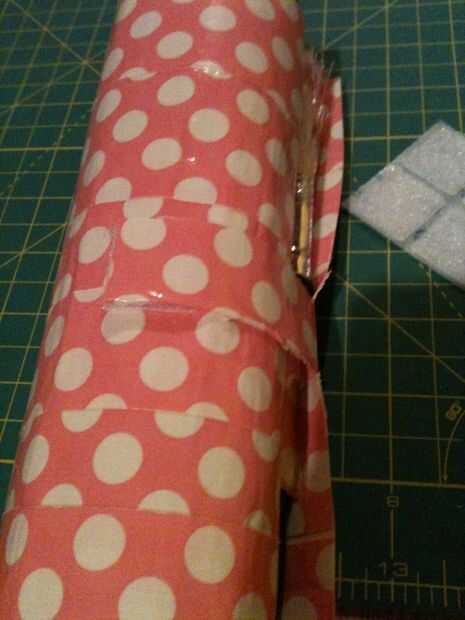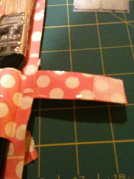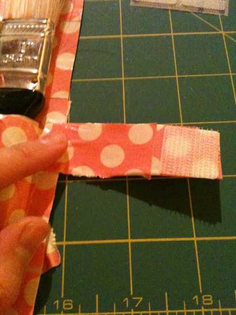 Por último, corte un trozo pequeño de cinta adhesiva y dóblela sobre el estilo de hotdog (mirar la foto si no conoces este término). Pegar un lado del Velcro en la punta de la aleta y conducto de cinta adhesiva en la parte delantera y hacia la derecha de la hoja de la cinta de conducto. A continuación, colocar al otro lado del Velcro en la parte ya pegada, como si ya fueron pegado a algo y ahora es Velcro al otro lado. Cuando enrolle la hoja desde el otro lado, se pegará la aleta hacia abajo de donde debería ser el otro lado. El sistema de Velcro de las Naciones Unidas y frote el velcro para asegurarse de que ambas partes se pegan bien.