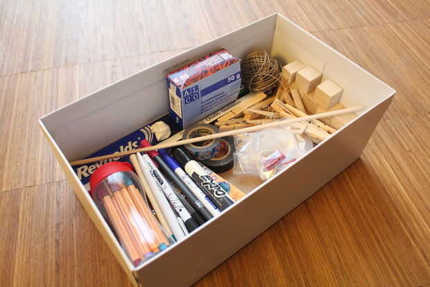 Además de los materiales, usted querrá tener algo de tijeras y herramientas de mano básicas útiles para cortar cosas, clips de papel de doble, empujar los agujeros en el cartón, etc...