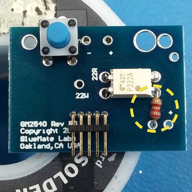 La soldadura a la una pierna de la resistencia junto con el pin de "opto".