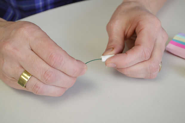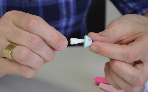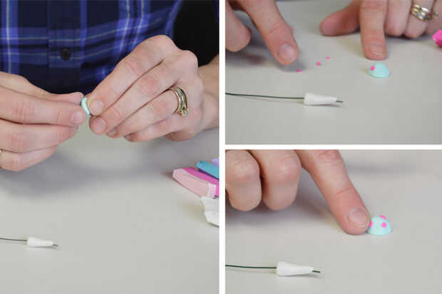 Setas: Rodillo hacia fuera el vástago con la arcilla de polímero blanco. Cono por lo que la parte superior ligeramente más delgado.