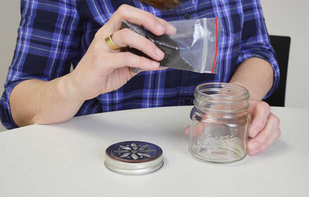 Para hacer el terrario, comenzar llenando la parte inferior de la jarra con el suelo en su juego.