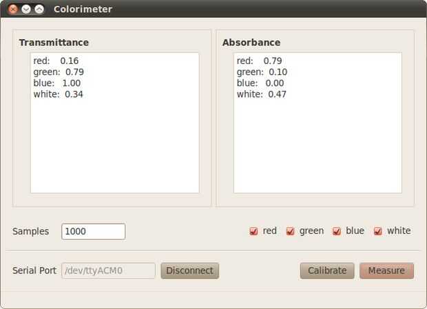 Software - descargar y guardar el software de colorímetro ejecutable (Windows o Linux) desde el mismo sitio que el anterior. Tenga en cuenta, para la versión Linux, que tendrá que hacer el archivo ejecutable antes de que se puede ejecutar.