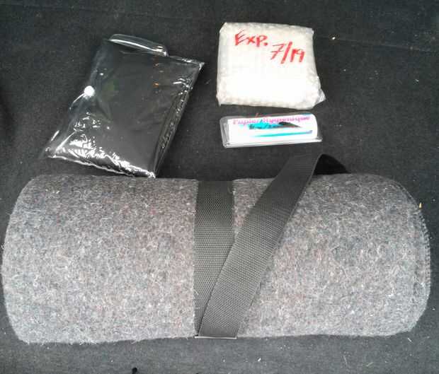 Kit de primeros auxilios: sólo guardo un pequeño botiquín en el coche para cortaduras y raspaduras. Nada tan grave como para requerir un torniquete es mucho más allá de mi habilidad para tratar.
