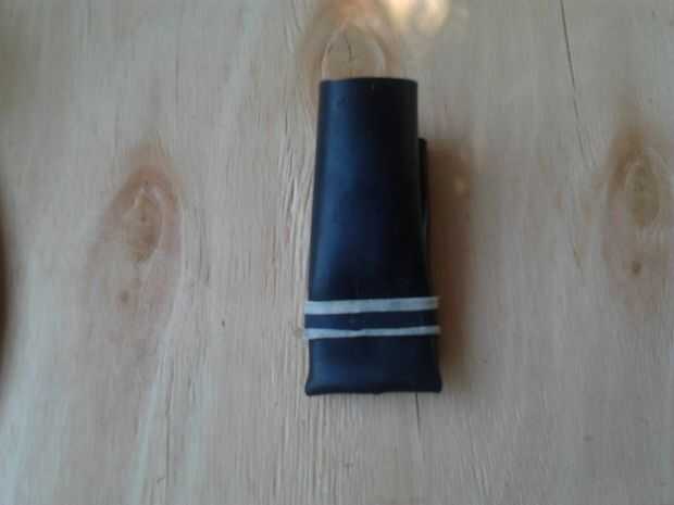 Obviamente para mí a permanecer "en" las tijeras encontró el lugar más simple para decir... mi bolsillo!Pero para que se ajuste al bolsillo sin ira mi esposa (para bolsillos rotos) debe tener una protección. Pensé tan utilizar una vaina de bricolaje muy pequeño hecha de un pedazo de cámara de aire bicicleta (y aquí la encontraron...). Tomé un pedazo de tubo interno de un largo de bicicleta de unos 10 cm y con una gota de pegamento del cianocrilato cerré la parte interna de este medio. Por lo tanto he creado dos bolsillos: la primera es para las tijeras; el segundo que utiliza en su lugar para dos accesorios útiles y una pequeño destornillador y cinta adhesiva. Para que encajen permanentemente he creado, siempre con el pegamento de cianoacrilato, dos pequeños bolsillos para accesorios de dos. Yo no lo tuve en mano, pero está claro que el mejor destornillador es el clásico "probador". Entonces, como puede verse en la figura tercera, doblé los dos bolsillos (siempre pegar con pegamento de cianocrilato) y reforzando el aparato con un tubo interno elástico (que he destacado con dos tiras adhesivas)