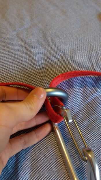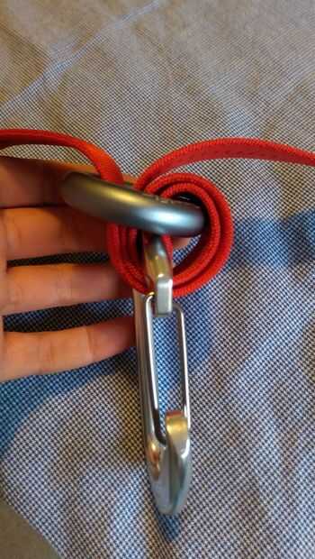 Usé un enganche diferente (otro no namer) con el anillo de rap, he probado solo la colocación a través de una vez pero comienza a deslizar eventualmente. Mejor ir sobre él dos veces y luego no se movió en absoluto.
