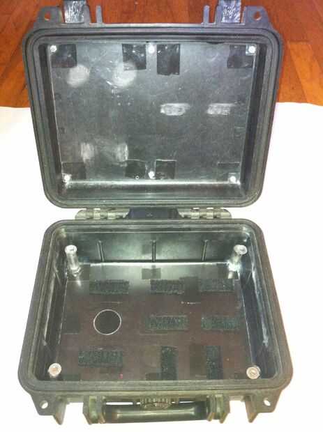 No quiero destruir mis partes si alguna vez tuve que desarmar mi kit para cambiar algo o corregir un error cometido poniendo mi caso juntos, así que decidí fije delgadas hojas de lexan para el fondo y la tapa de la caja y luego mis estantes y soportes para el riesgo. Usando una plantilla de cartón, cortar lexan para encajar la parte superior e inferior de la caja.