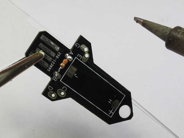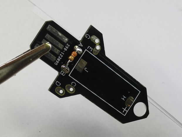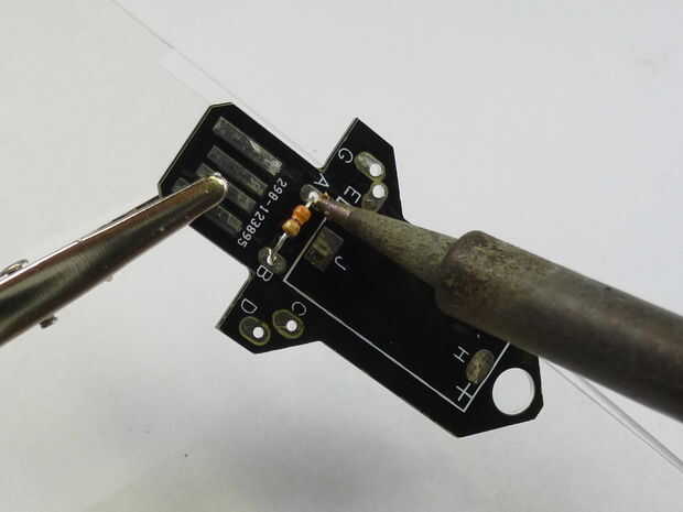 2. Inserte la resistencia a través de filtros A y B. No tiene una polaridad, por lo que no importa cual cable va en que agujero.