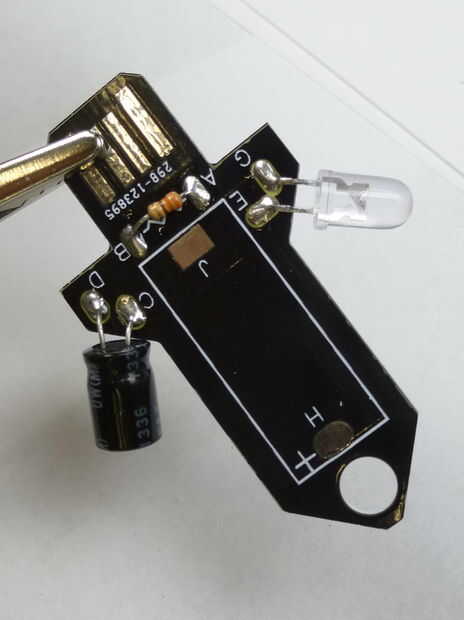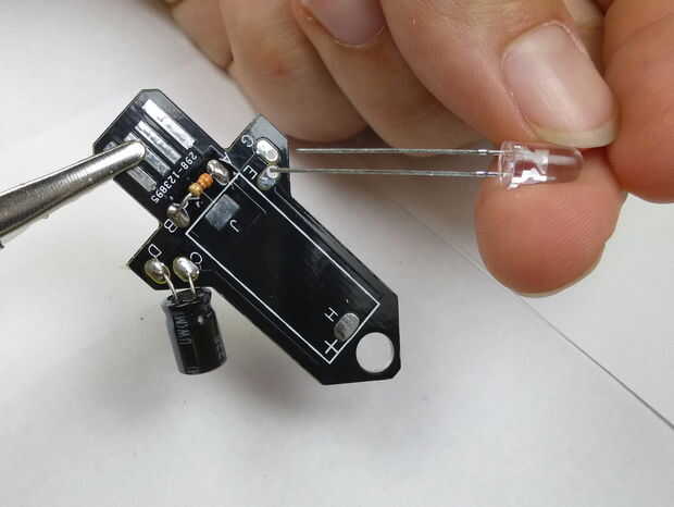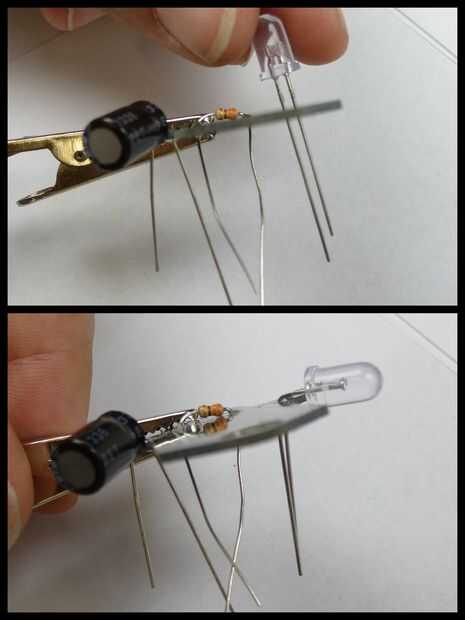 - La soldadura de los alambres como con la resistencia y el condensador.