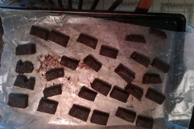 Sacar y cortar en 1/2 x 3 en astillas si desea que el aspecto de "Kit Kat" dejarlo como está, de lo contrario cortarlo una vez por la mitad para producir caramelos de tamaño normal.