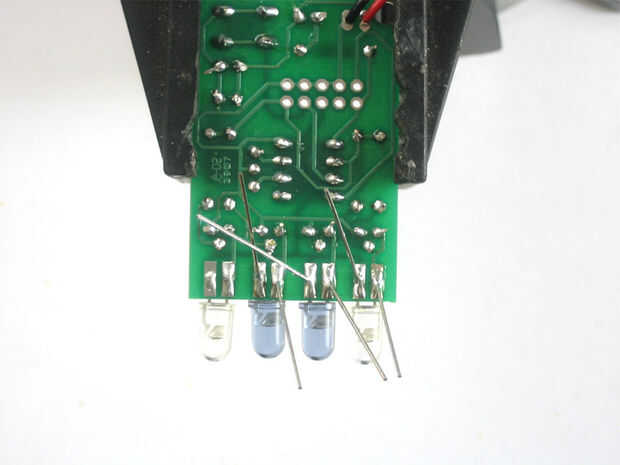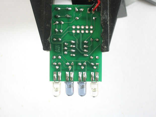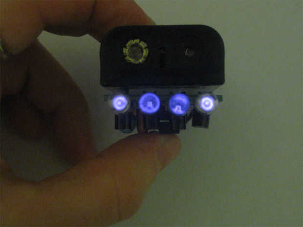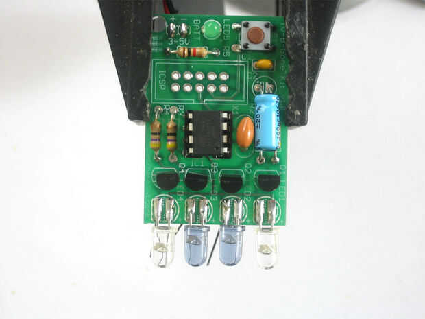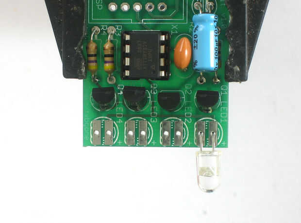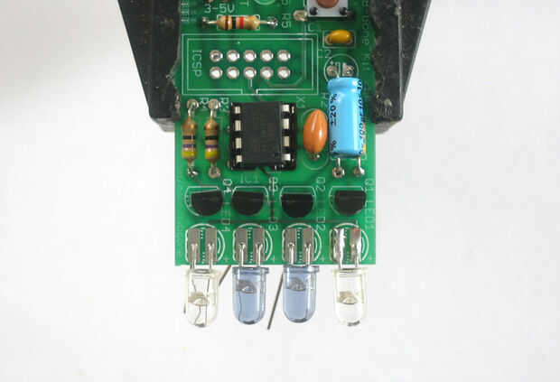 Coloque los LEDs restantes. Los tintados azules deben ir en el centro. Asegúrese de que estén en la orientación correcta.