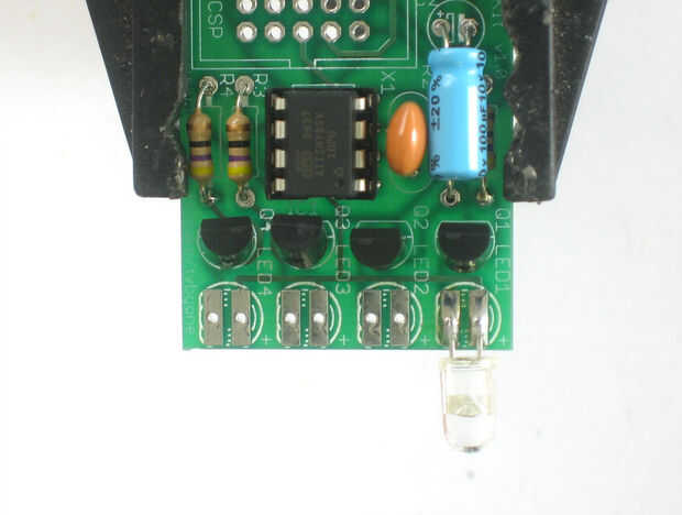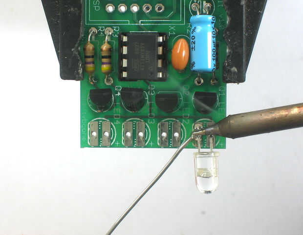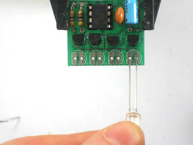 Doblar el LED más de 90 grados por lo que sobresale sobre el borde de la placa de circuito