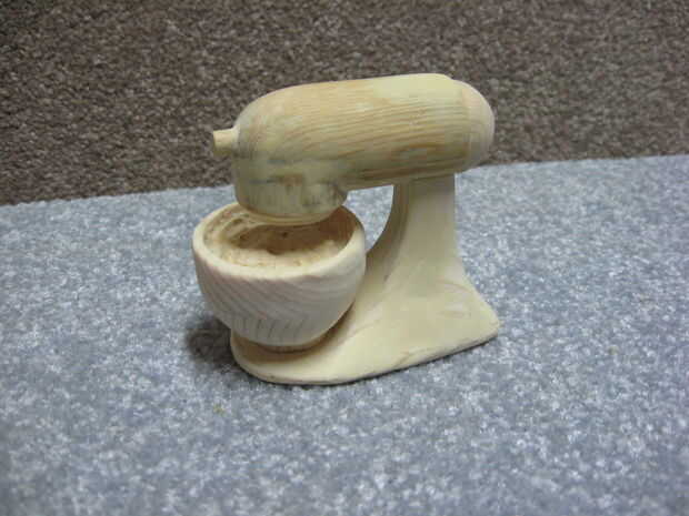 La parte superior del mezclador fue pegada al soporte con la ayuda de un pequeño taco para fortalecer el vínculo. El tazón de fuente no fue unido en este momento.