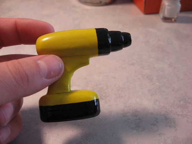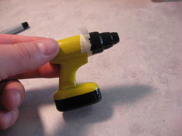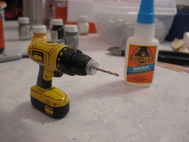 Datos básicos para el taladro fueron pintados en con un cepillo pequeño. Detalles más finos fueron pintadas sobre el uso de palillos de dientes o dibujados con un rotulador.
