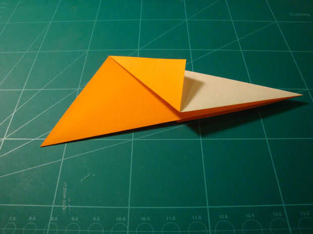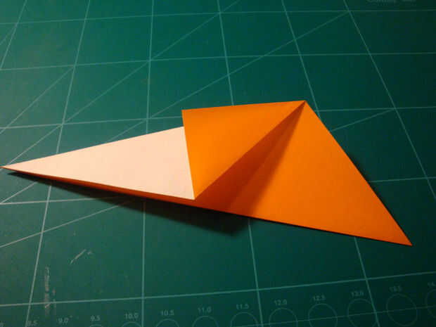 Doblar la esquina pequeña de la línea central. Repita para el otro lado.