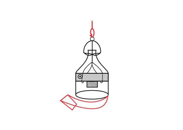Conecte la cámara con un gancho de musketon a la cometa por hacer un lazo con un nudo en la cuerda de la cometa. Haga clic en el gancho para sujetar la cometa.