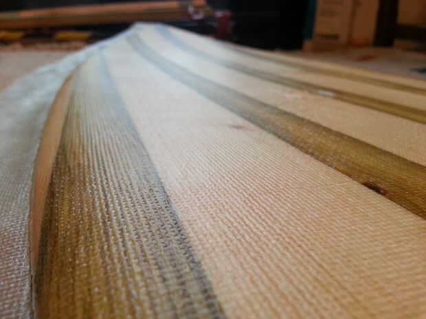 Cuando el epoxy finalmente cura tome la Junta Directiva de la bolsa de vacío. Recorte el exceso de epoxy superpuesto, con un cuchillo afilado. Lije suavemente hacia abajo de los carriles.