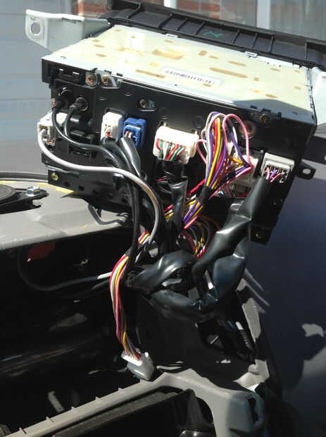Suavemente flip su radio boca abajo y quite el CD controlador plug (2 º de derecho) Instalar separador de arnés de cable GTA al conector existente y luego GTA ipod cable. Finalmente el controlador de CD existente.