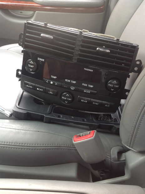 Retire los 4 pernos para el módulo de controlador de aire acondicionado y los 2 enchufes eléctricos de la parte posterior.