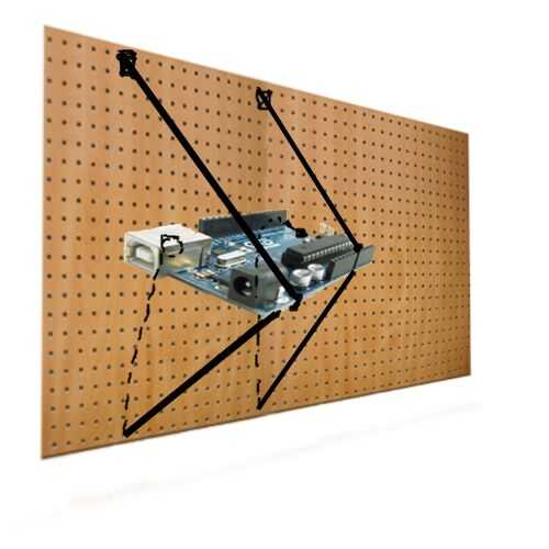 Después se instala el arduino, tendrá que montarlo en el tablero de pan. Para hacer esta envoltura algunos del cable (con aislamiento) alrededor del tornillo de los Arduinos agujeros y luego la pisada a través de la placa perforada sobre a medio camino para arriba, luego hacia abajo y luego por el tablero perforado para el agujero de la parte posterior, enróllelo alrededor de ese agujero y luego ejecute hasta la cima de la perforada, del hilo de rosca a través de uno de los orificios y fíjelo con pegamento caliente.
