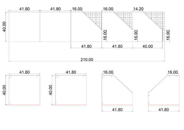 El dibujo muestra cómo cortar las piezas del tablero, junto con la colocación de los tornillos. Los lados de la caja de todos tener en cuenta el espesor de la Junta, para que la dimensión interior de la caja viene a 400 * 400 * 382 mm. El lado abierto de la caja se dibuja en rojo.
