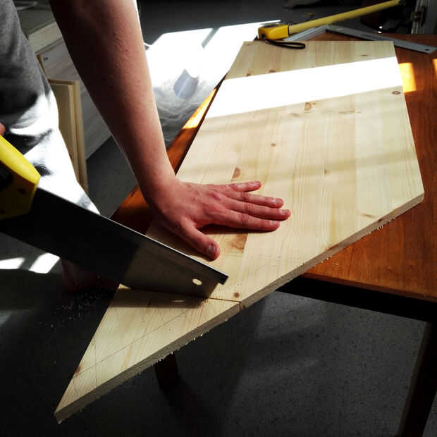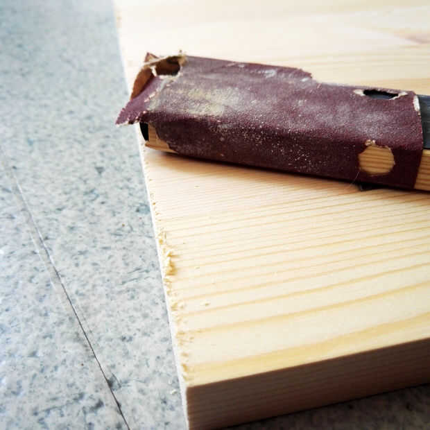 Después de todas las piezas son cortadas y verificadas (por tercera vez, los dos primeros controles deben hacerse antes de que usted corte!) arena por los bordes con un poco de papel de lija, deshacerse de las rebabas de la sierra y suavizar el corte. La arena también marcas de lápiz errante o irregularidades en las superficies de las piezas. Fijación de la lija en un borde plano de un poco de madera hará su lijado más fácil. Opcionalmente, para un acabado extra suave, uso por último un poco de lana de acero para pulir la superficie.