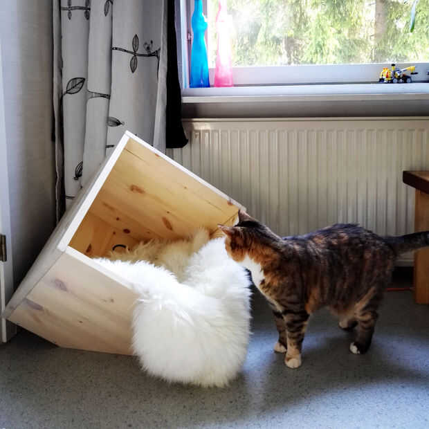 Por último, poner la tapa del orificio, configurar un gato agradable cama interior (la nuestra es sólo una oveja doblada de IKEA) y ver con satisfacción como sus gatos evitar cuidadosamente mostrando algún interés en la cosa para las próximas dos semanas, descansar en su lugar en la caja de cartón que tenía sus herramientas antes el proyecto.
